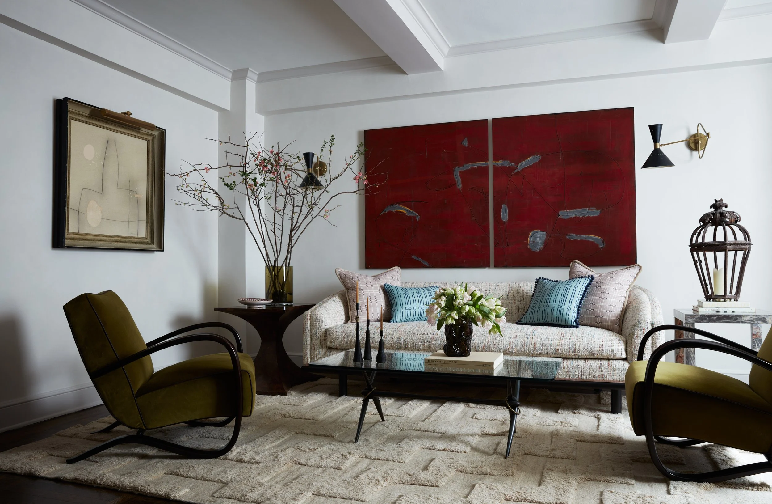 A prewar filled with rich color, sculptural lighting and a global mix of vintage finds.